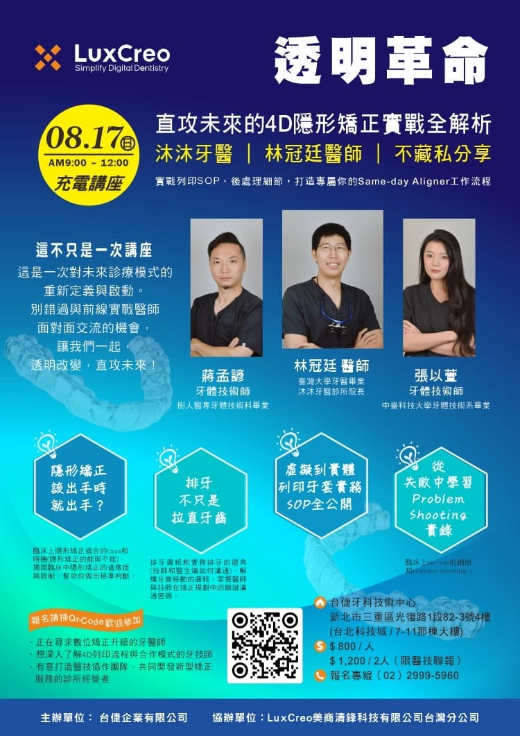 本課程邀請沐沐牙醫林冠廷醫師,分享他在臨床第一線實戰應用的寶貴經驗,
