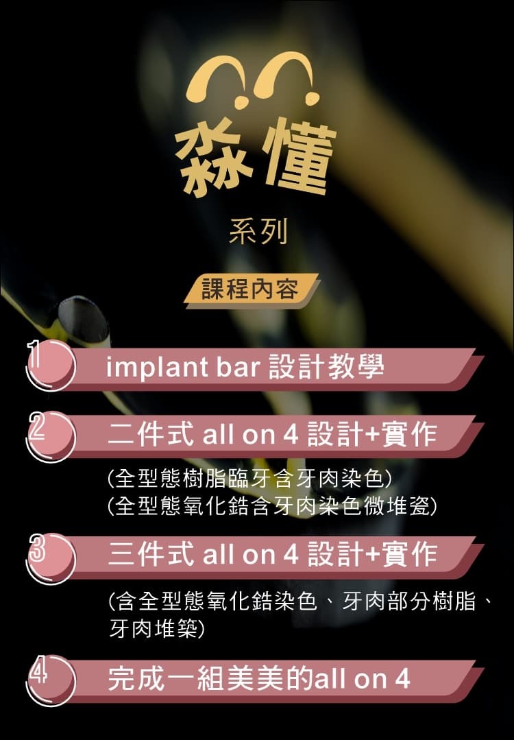 內容豐富,詳細說明all on 4的細節。上過淼哥課程的朋友都知道,