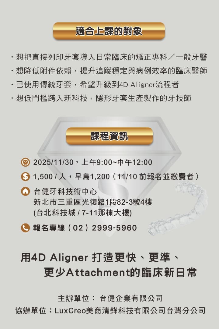 齒顎矯正專科林佳宏醫師,一次解析DPA核心設計、4D Aligner生物力學與臨床SOP,讓你掌握直接列印牙套的未來關鍵!